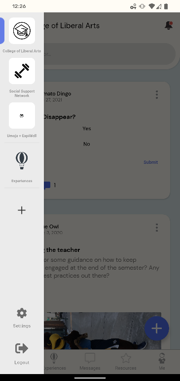 Navigate to the community with which you would like to interact by opening the left side bar as seen below.