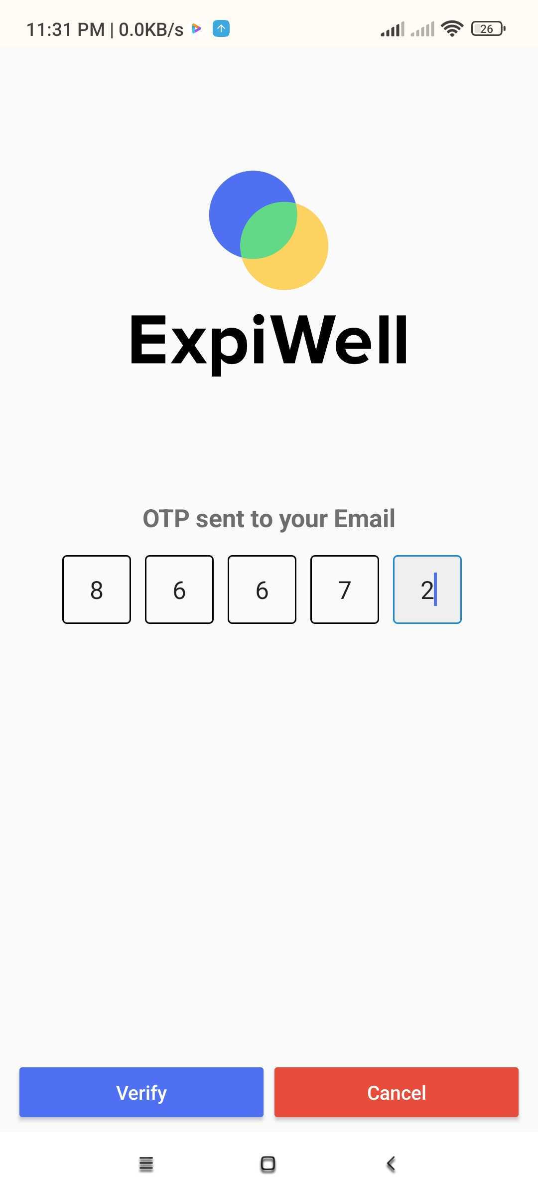5. Enter the One-Time Password on your ExpiWell mobile app.6. After entering the correct OTP, you will be welcomed with a short introduction.