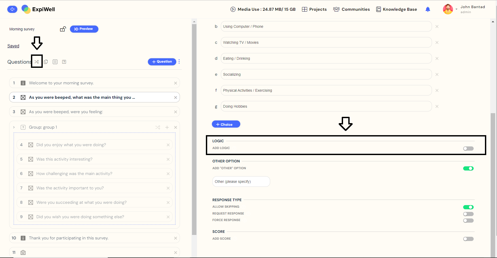 Before we tackle the different logic functions, it is essential to know that all the logic applied will be disabled when you decide to randomize your survey questions.