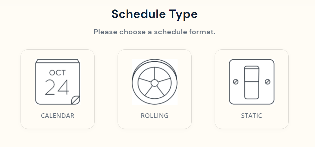 Both Calendar and Rolling schedules accommodates different scheduling variants: