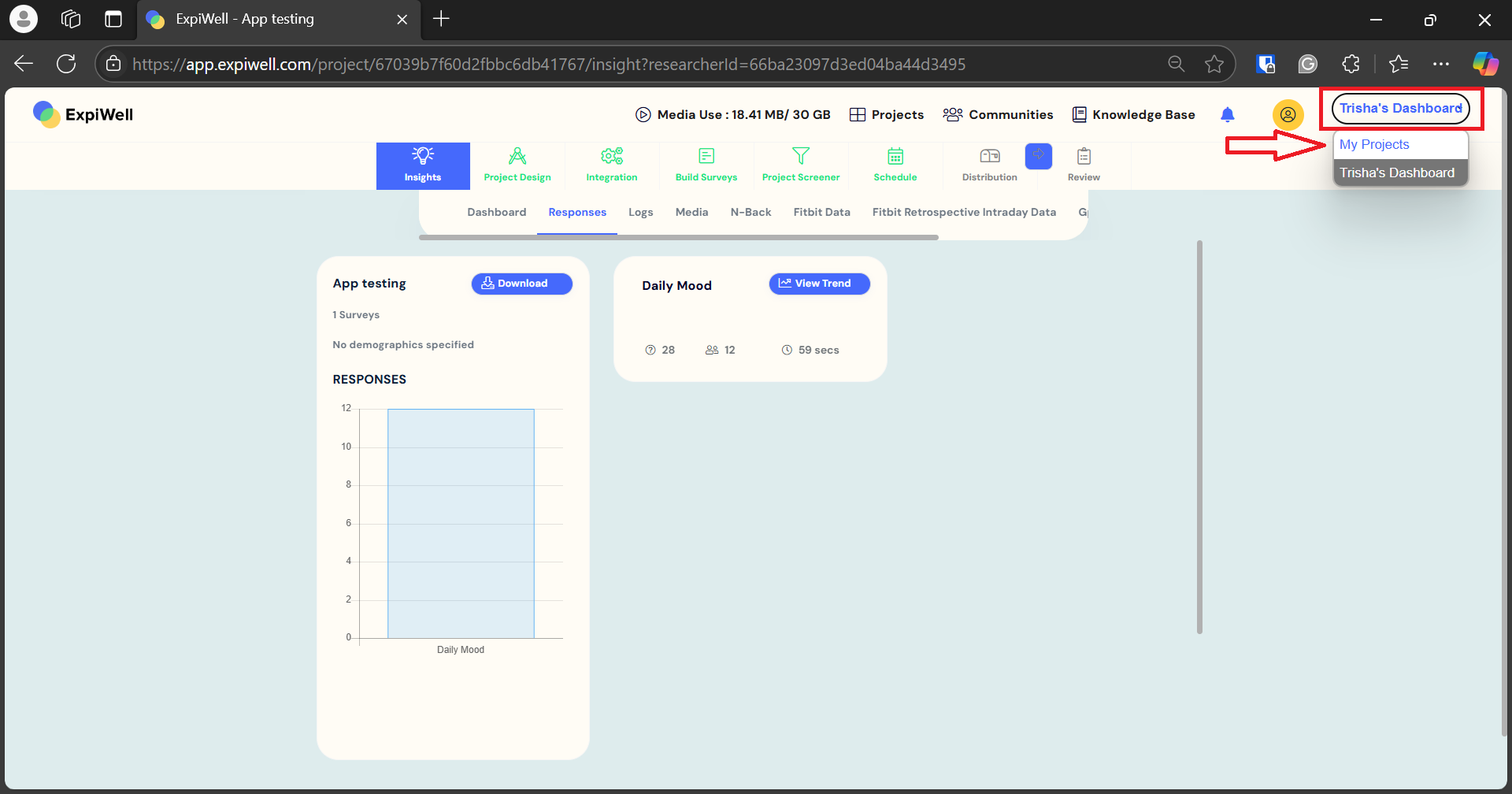1. Log in to your ExpiWell account and navigate to your profile at the top-right corner.